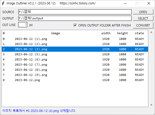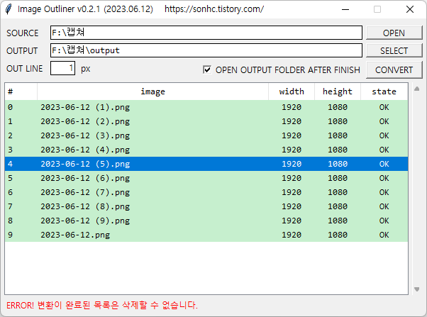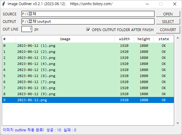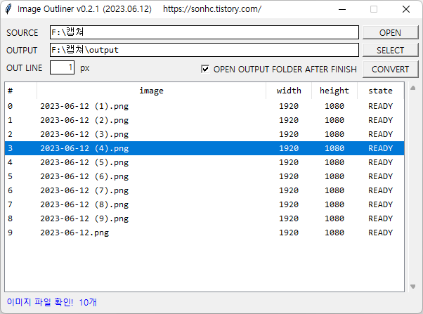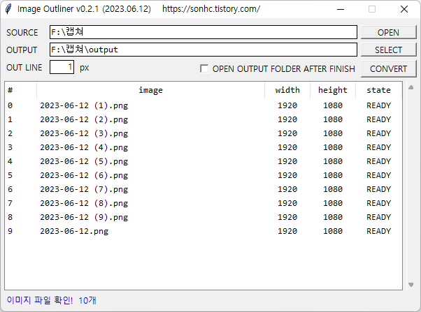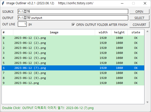- [CONVERT] 클릭시, image list의 파일들을 지정된 1 px 두께로 검은색 테두리 적용됨.