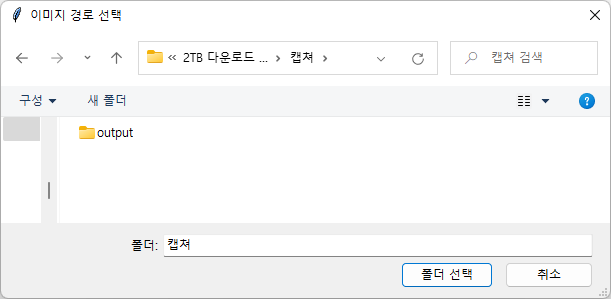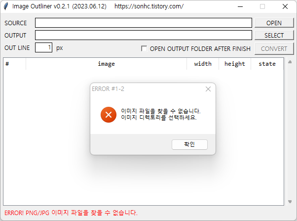- exe 실행 경로에 image 파일이 없으면, "이미지 디렉토리를 선택하세요." ERROR 팝업 표시됨.