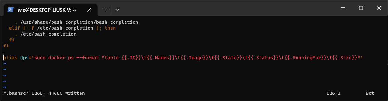 | alias dps='sudo docker ps --format "table {{.ID}}\t{{.Names}}\t{{.Image}}\t{{.State}}\t{{.Status}}\t{{.RunningFor}}\t{{.Size}}"' |