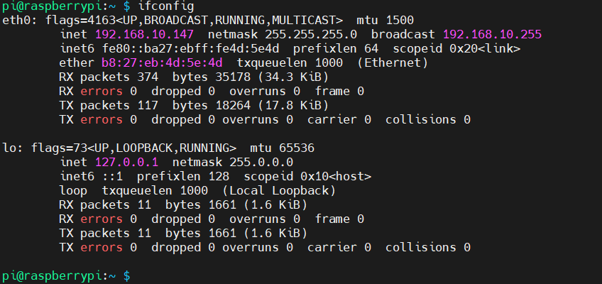 - sudo ifup eth0