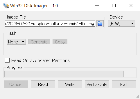 - win32diskimager 실행