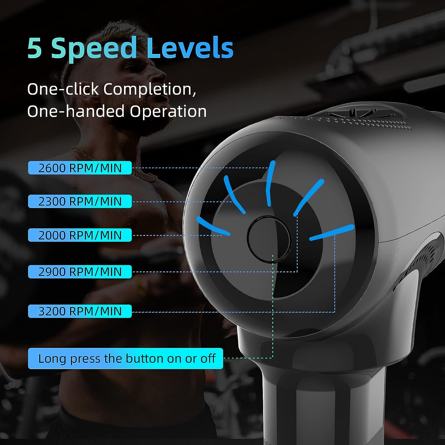 HEYCHY V2 Massage Gun Deep Tissue Handheld Percussion Massager Gun up to 8H Runtime with 2600mAh Battery for Release Lactic Acid, Muscle Soreness and Stiffness, Body Recovery