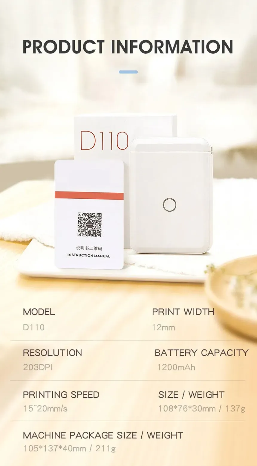 Niimbot D110 Paper Sticker Wireless Label Printer Pocket Handheld Printer Thermal Price Label Sticker Marker Home Office USE