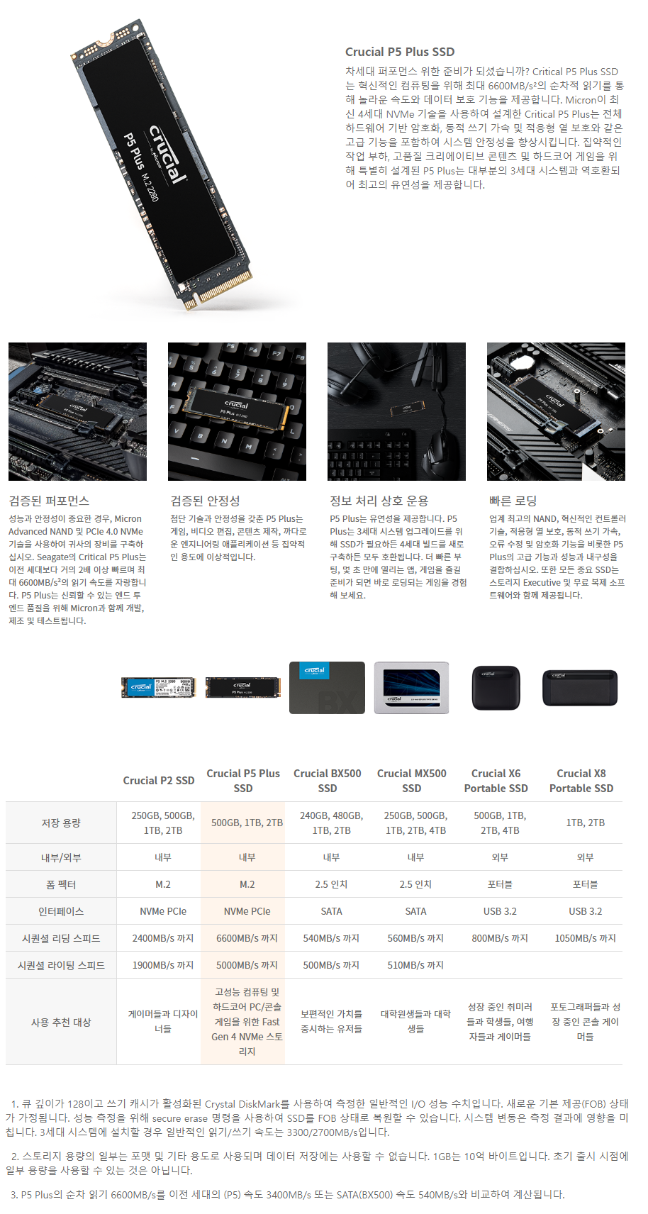 - 선도적인 Micron Advanced 3D NAND 및 혁신적인 컨트롤러 기술을 기반으로 제작되었습니다