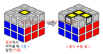 4-3) 상황 2이면 → ┘기준으로 맞추고 (3층 옆으로 돌리기) → 4단계 공식 (한번 더) à 상황 3 확인 |
