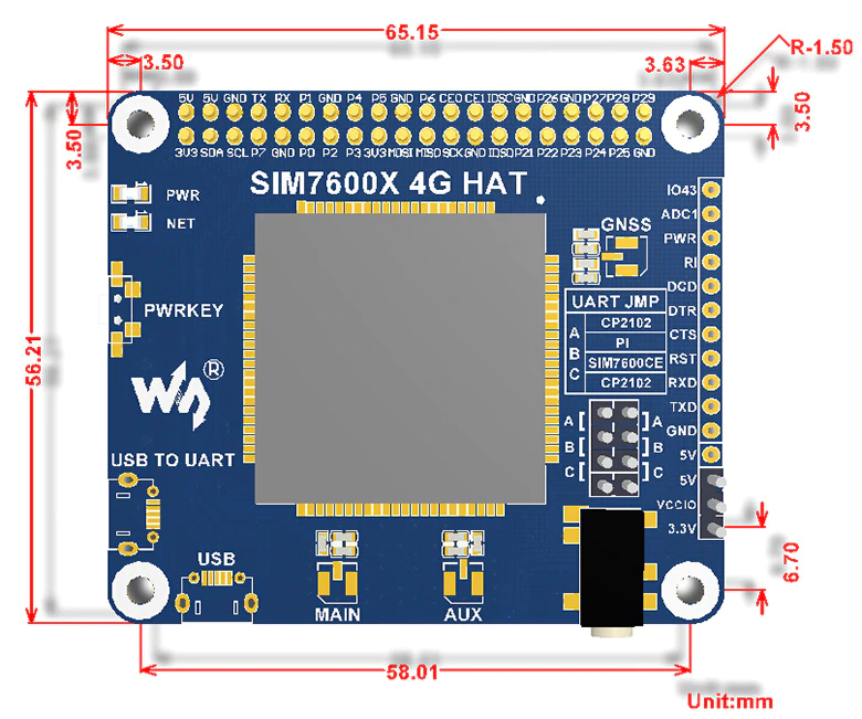 - SIM7600 control interface: for connecting with host boards like Arduino/STM32