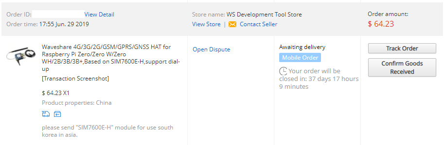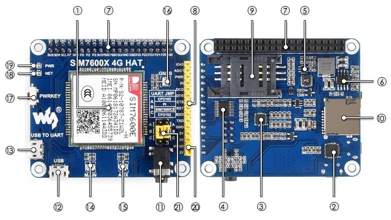 | Applicable Region | SIM7600E-H 4G HAT is mainly applicable in Southeast Asia, West Asia, Europe, Africa, SIM7600CE 4G HAT is mainly applicable in China. Please check the supported bands according to your local service provider, select the proper one when placing order. |