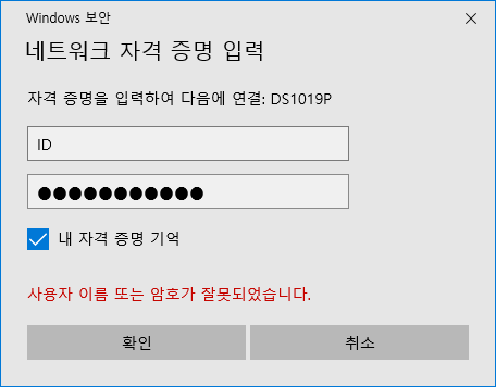 윈도우에서 네트워크 드라이브를 연결할 경우 "내 자격 증명 기억"을 체크한 경우