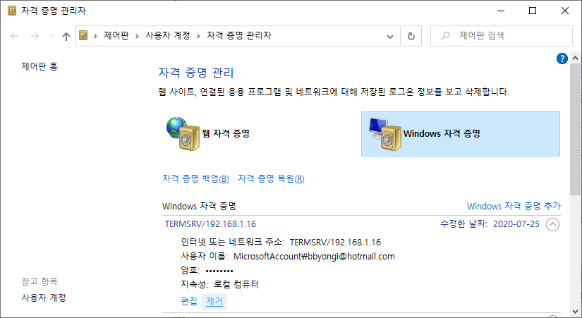 4. 자격 증명 관리자 -> Windows 자격 증명