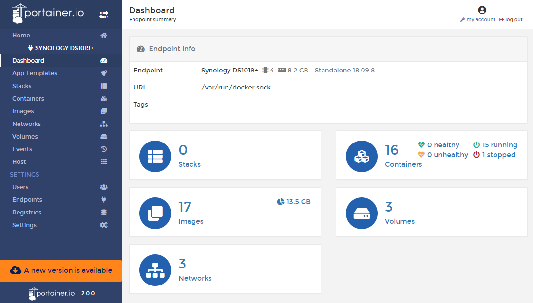 - $ mkdir /volume1/docker/portainer