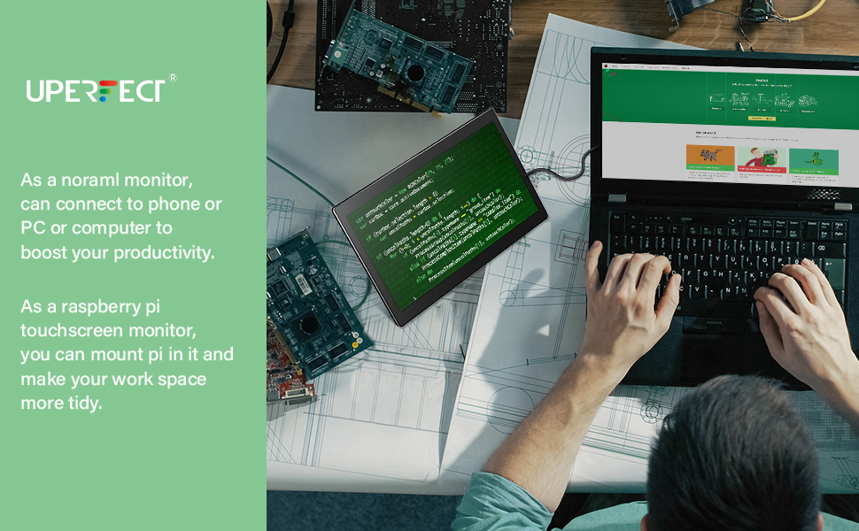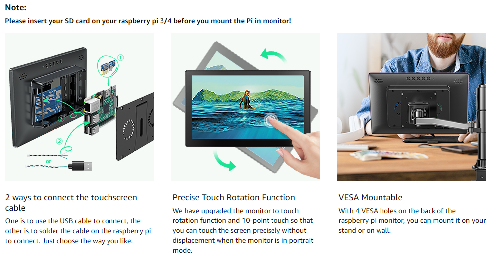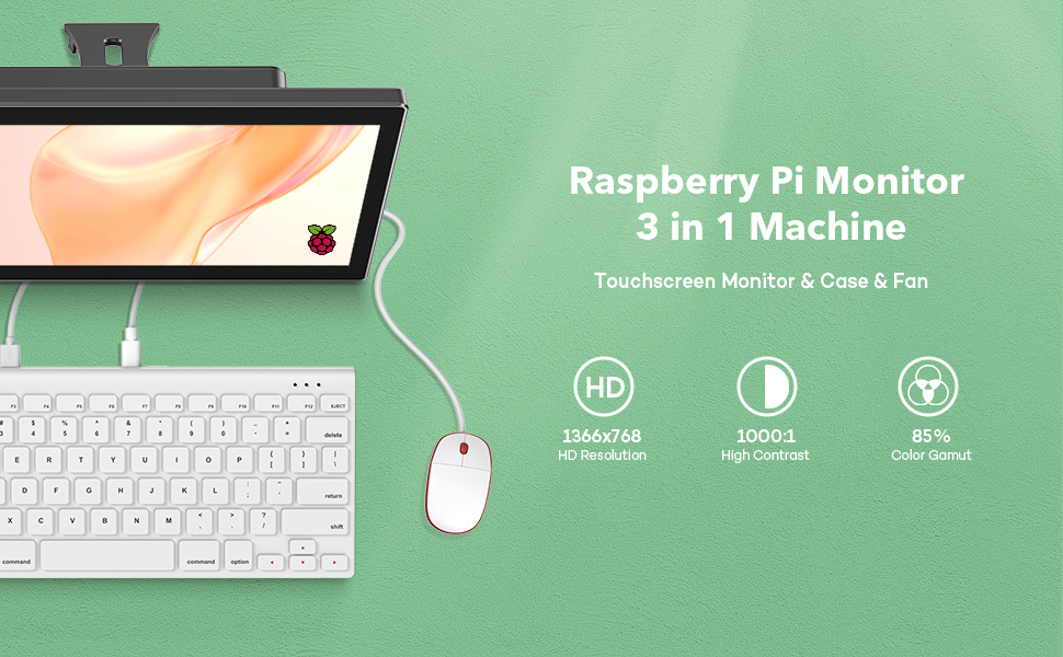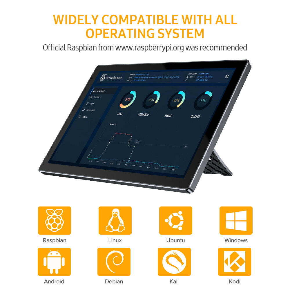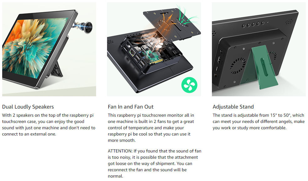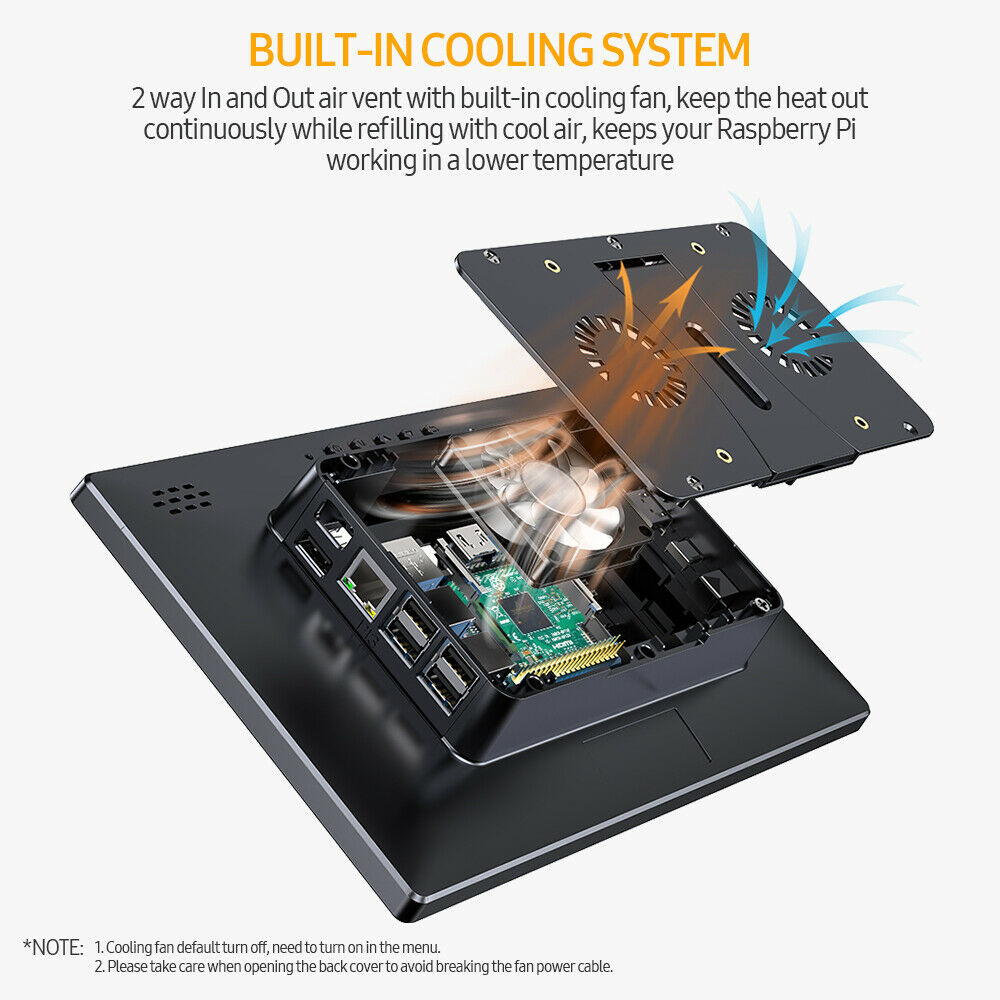 Raspberry Pi Touchscreen Monitor 10.1’’ Display with Case, Fan & Stand Featured Accurate 10-Point Touch, Heat Sink, Ultra Wide IPS 178°Screen, 1366768, Type-C Compatible with Phone, Laptop or PC