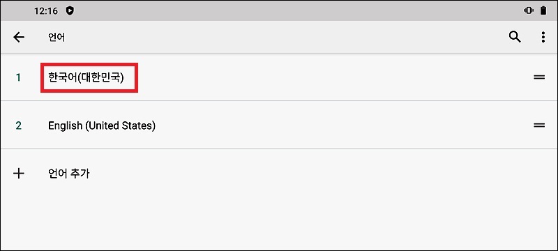 c. + Add a language 선택 -> 한국어(대한민국) -> 언어 순위 변경 (1. 한국어, 2. English)