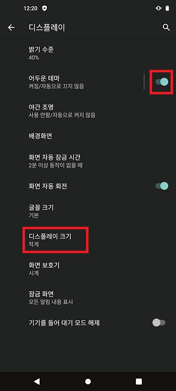 - 설정 -> 디스플레이 -> "어두운 테마" 설정