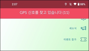 주의! GPS 활성화 하지 않으면, 앱에서 GPS 동작하지 못함.