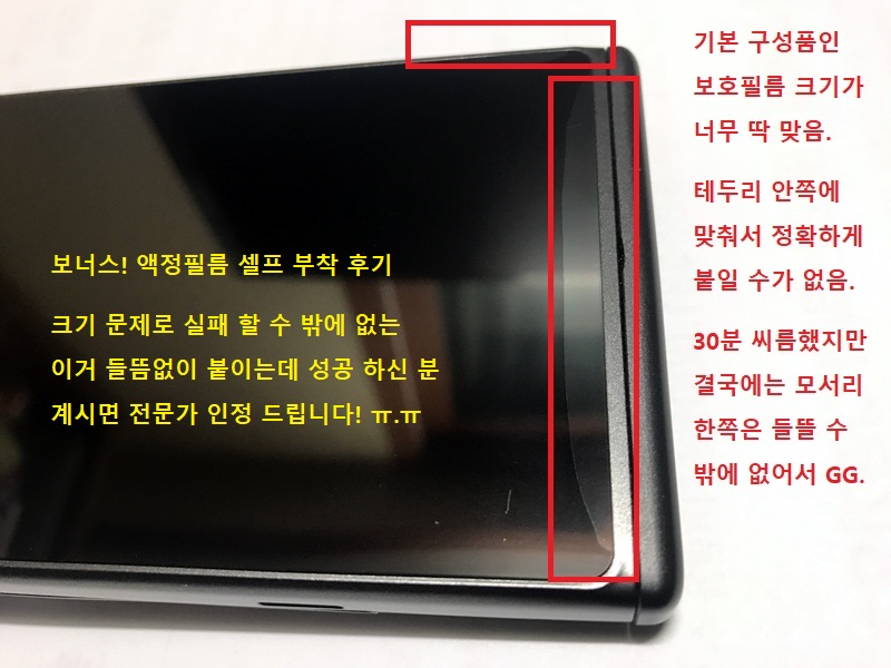 결론은 기본 액정필름은 버리시고 저처럼 방폭형으로 따로 구하시길 추천 드립니다.