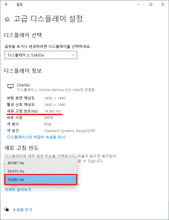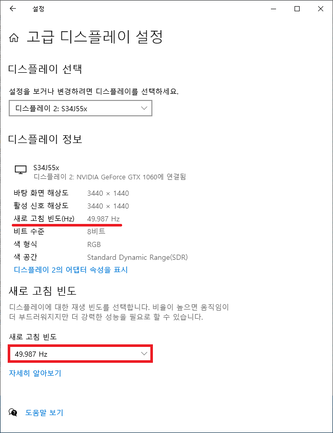 아니 무슨 싸구려 모니터도 아니고 스펙에는 75Hz 지원한다고 되있는데 50Hz 라니...
