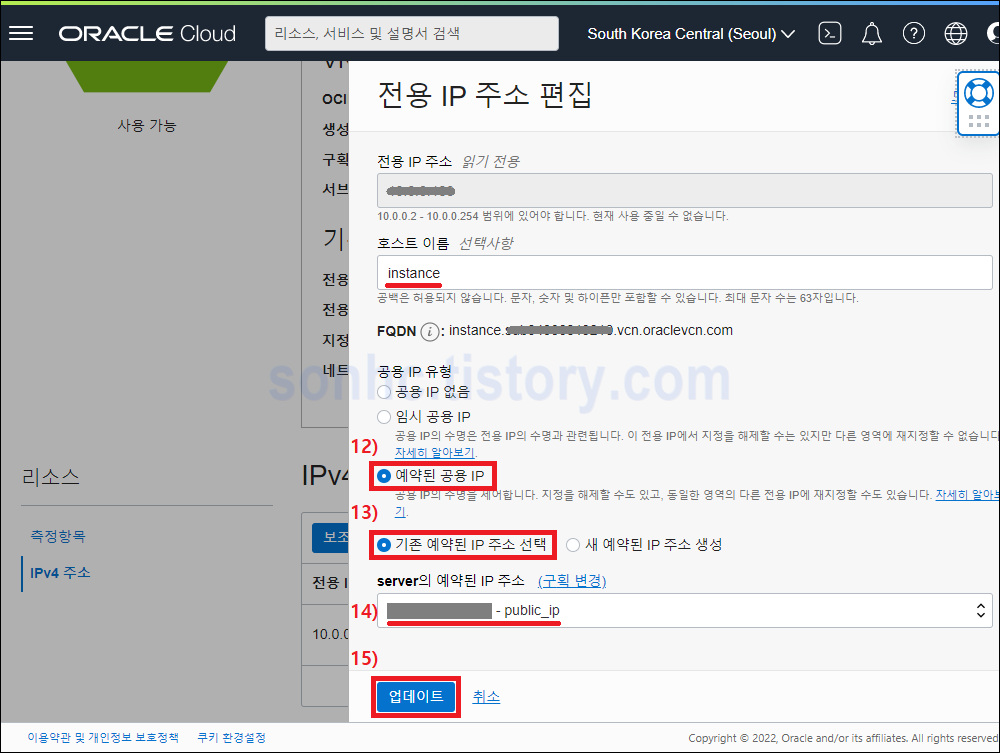 -> server의 예약된 IP 주소 -> 14) "y.y.y.y - fixed_ip" 선택 -> 15) [업데이트]