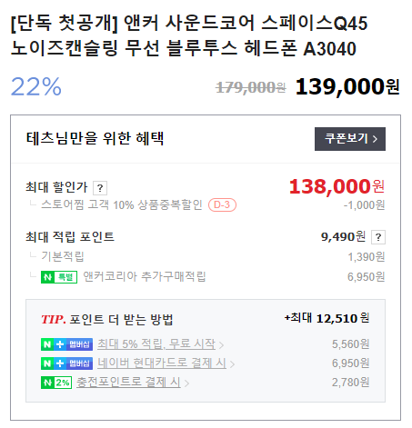 Q45 런칭 이벤트로 136,000원에 지름 완료