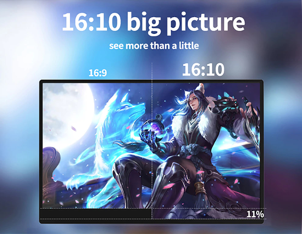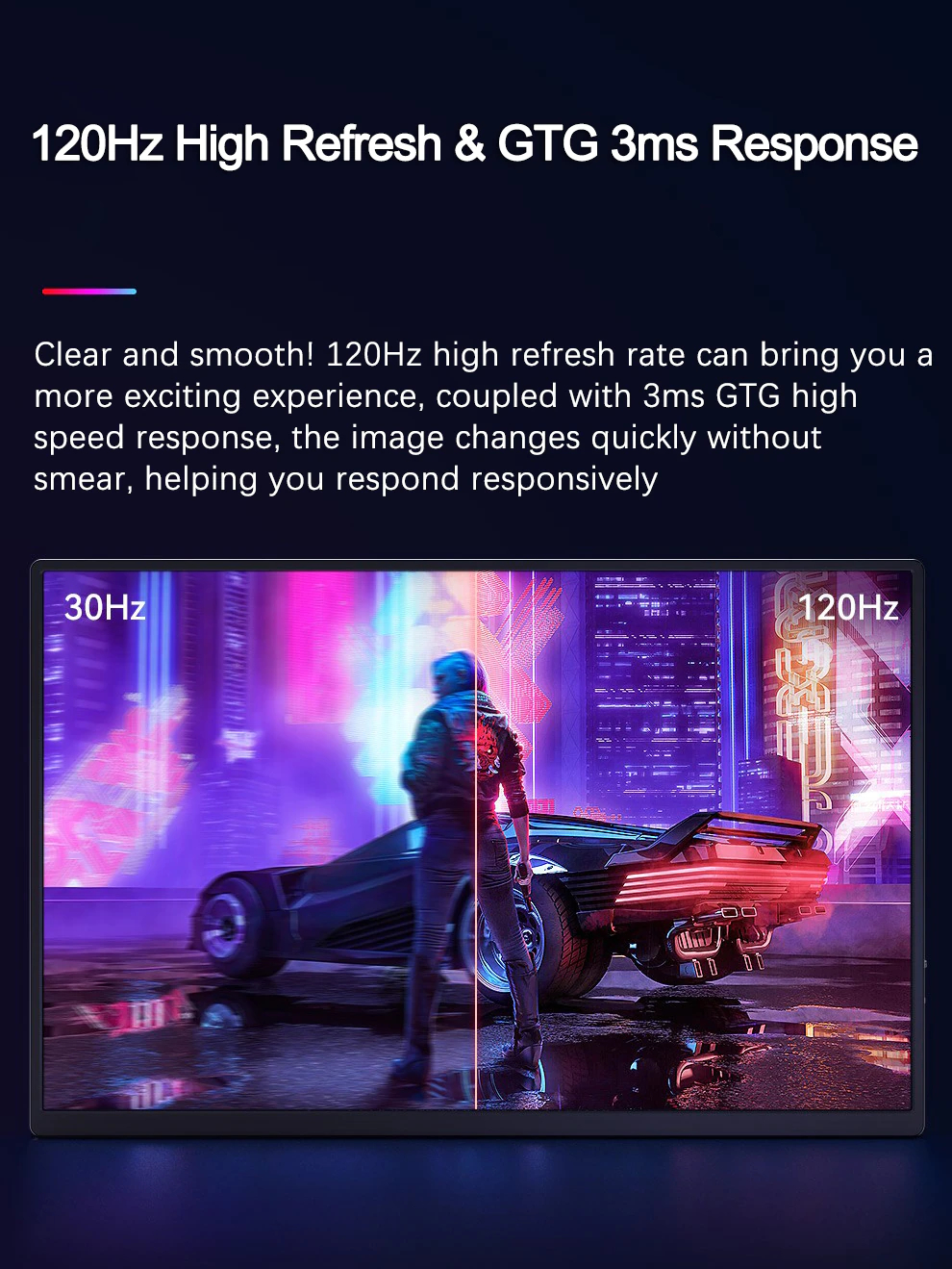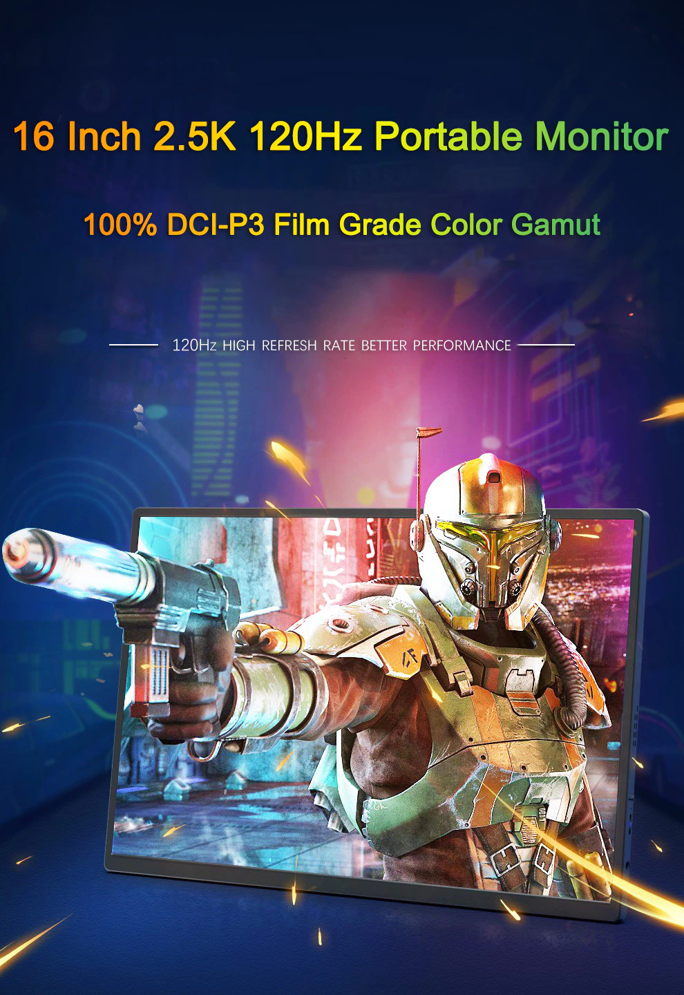 16 Inch 2.5K 120Hz Portable Monitor 2560*1600 16:10 100%sRGB 480Cd/m² Display Game Screen For Laptop Mac Phone Xbox PS4/5 Switch
