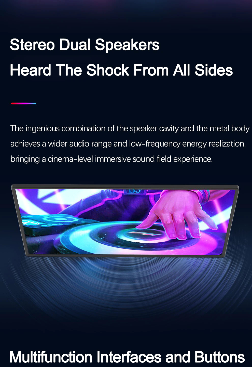 【Ultra thin and light body】The thickness of the monitor is only 9mm and the weight is only 728g. With ultra-narrow bezels, the left and right and top bezels are only 5mm, and the bottom bezel is only 9mm, making it easy to carry and not tiring.